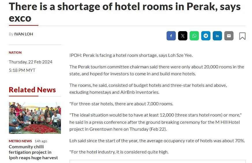 旅行者的战略位置 (Strategic Location for Travelers): 怡保位于吉隆坡(Kuala Lumpur)和槟城(Penang)之间,使其成为探索马来西亚的旅行者的热门中途站。随着ETS火车服务等交通连接的改善,越来越多的游客选择在怡保住宿,增加了对位置优越的Airbnb物业的需求。